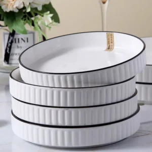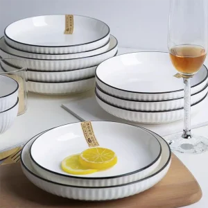 Gold Inlay Modern Light Luxury Ceramic Dinnerware Round Deep Plate Shallow Plate Oval Rice Bowl Soup Bowl Dinner Set