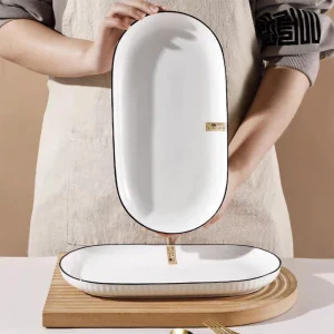 Double Ear Steamed Fish Oval Plate Ceramic Pure White Creative High Appearance Level Tableware