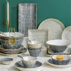 Crockery Pottery Tableware Dinnerware Set Luxury Ceramic Bowl Set for Restaurant